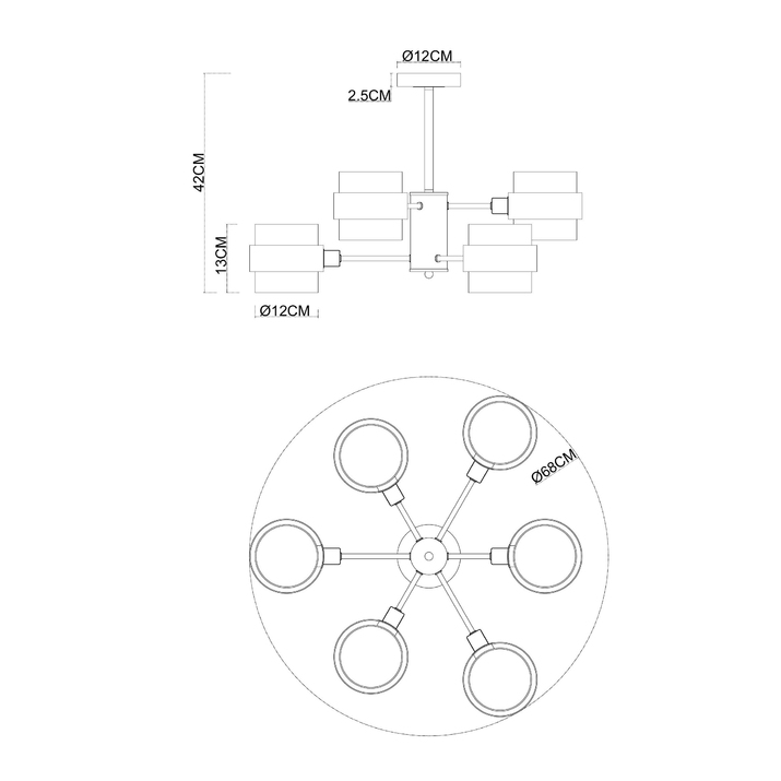 - Количество ламп: 6 шт