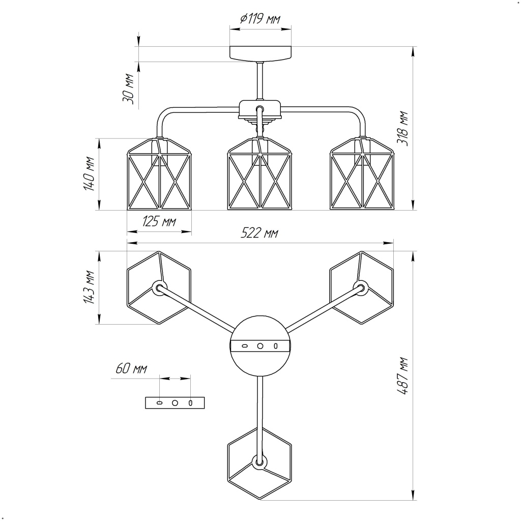 - Количество ламп: 3 шт