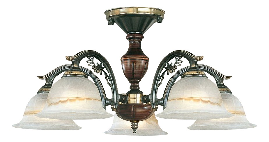 Потолочная люстра Reccagni Angelo PL 2701/5 Итальянского производсва – отличный выбор для Вас. Этот светильник Классического стиля хорошо подойдет Для гостиной и придаст помещению мягкий и приятный свет. Плафоны белые из стекла. Арматура бронза из металла. Кол-во ламп - 5шт. Общая мощность 300W