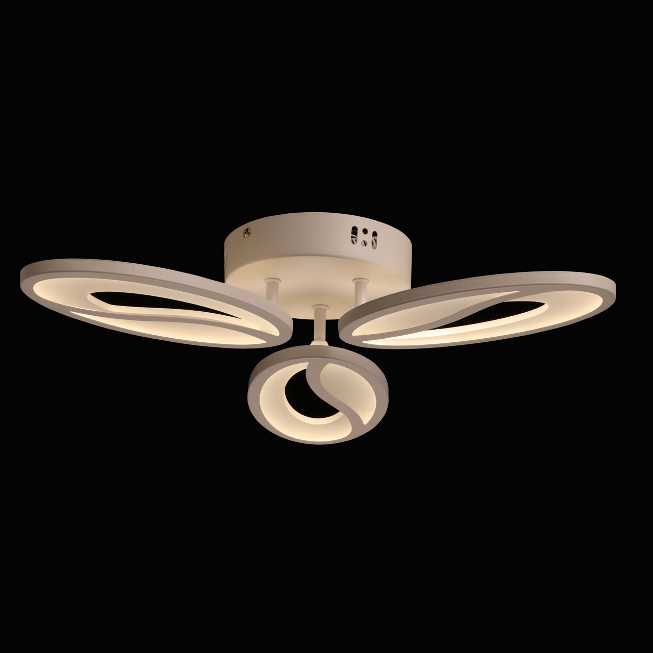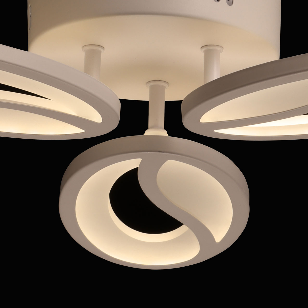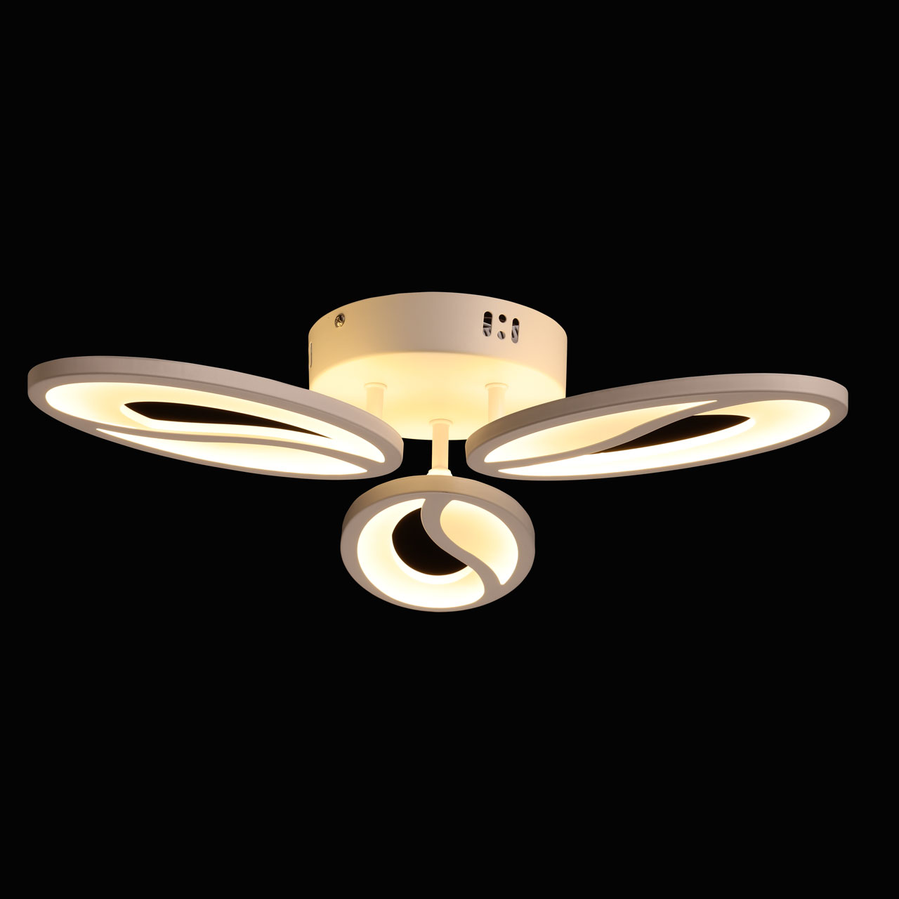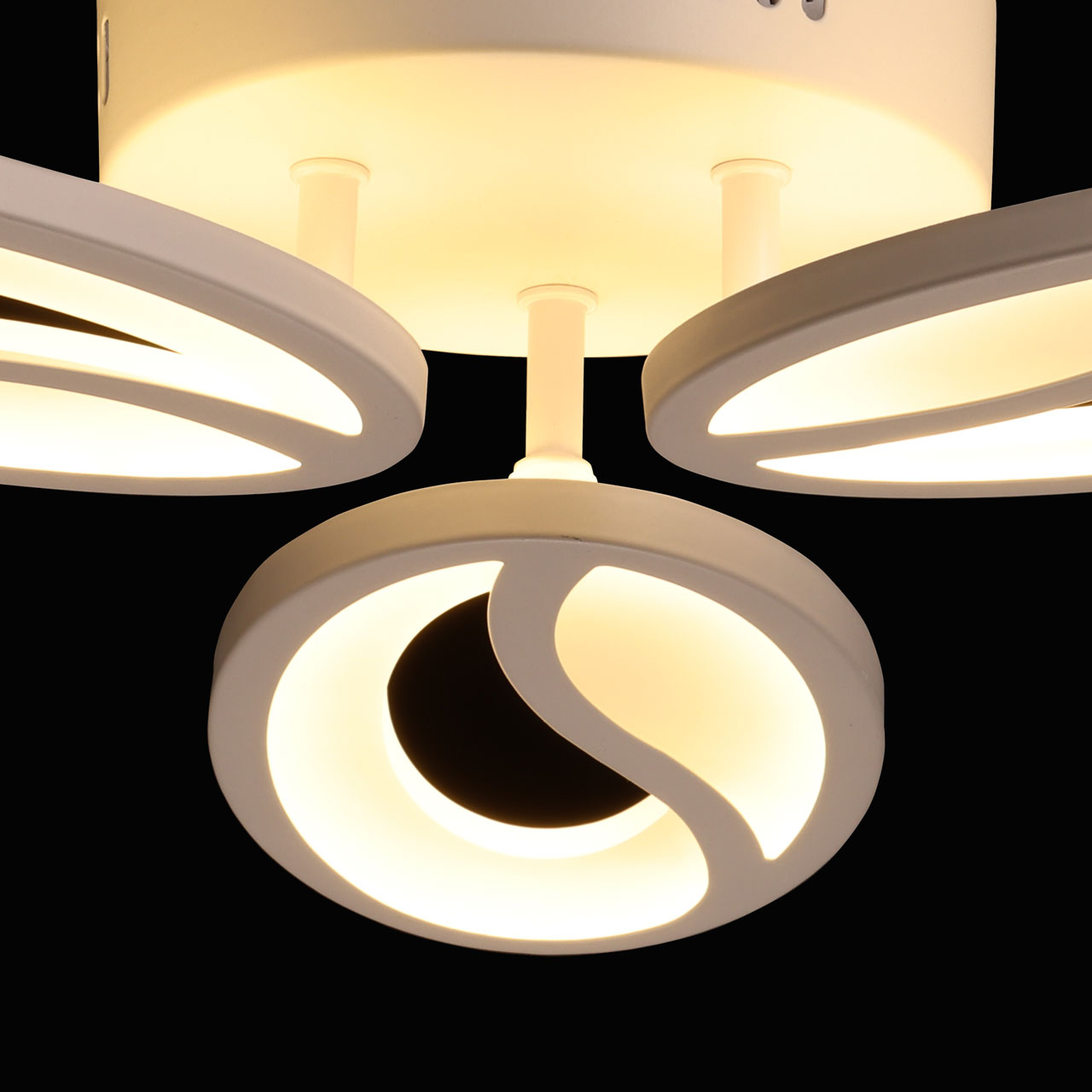 Многорежимность с изменением цветовой температуры от 3000К до 6500К и яркости света является элементом светодизайна и позволяет подобрать комфортную температуру света. Качественные светодиоды и корпус из сплава алюминия обеспечивают яркое освещение и долгий срок службы. Плавно изогнутые плафоны придают потолочной люстре элегантности и, благодаря им, светильник становится арт объектом. Наличие ПДУ обеспечивает комфортное переключение режимов освещения. Компактный светильник для стандартной высоты потолка. Светодиодные источники света экономичны и безопасны.