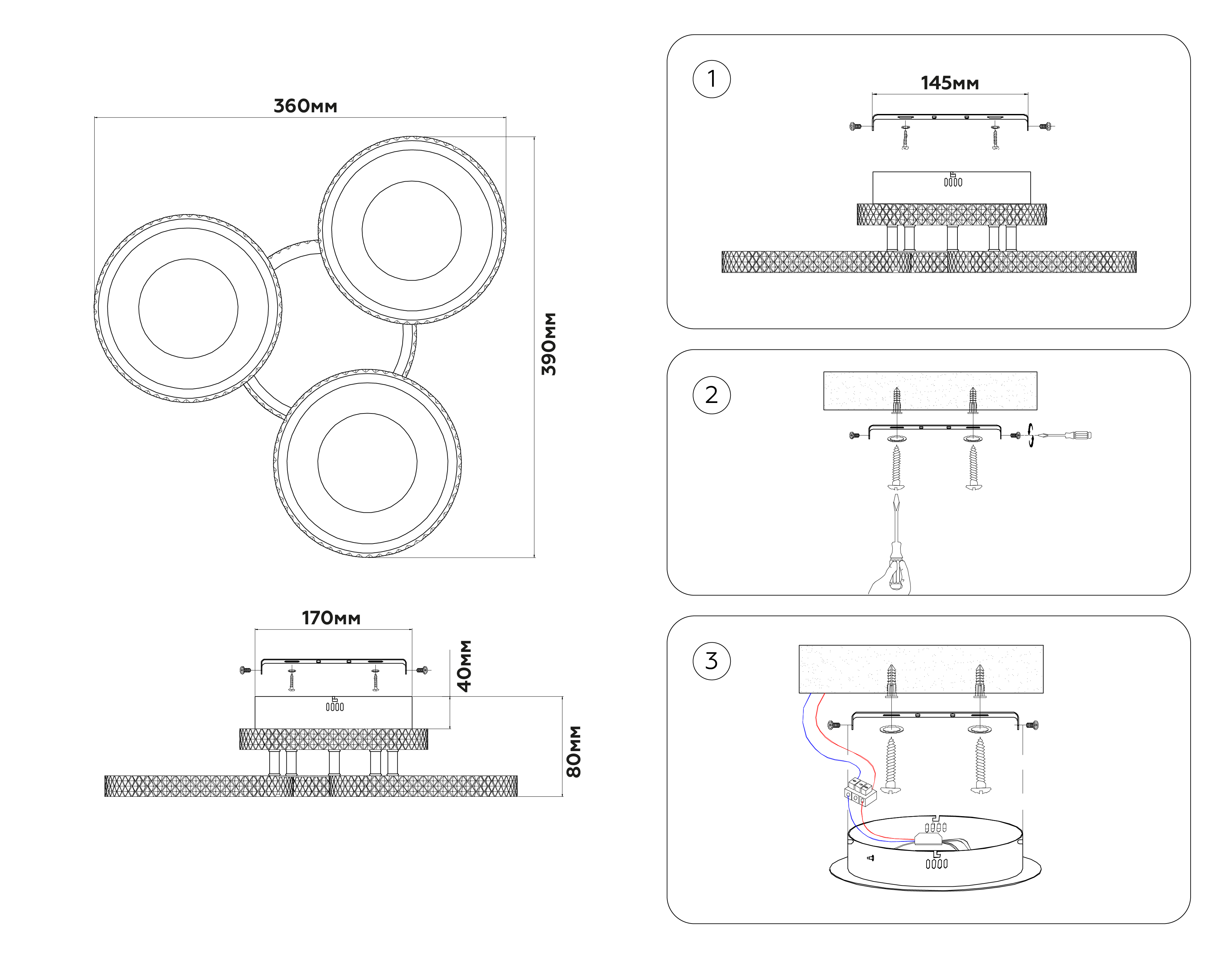 - Количество плафонов: 3
