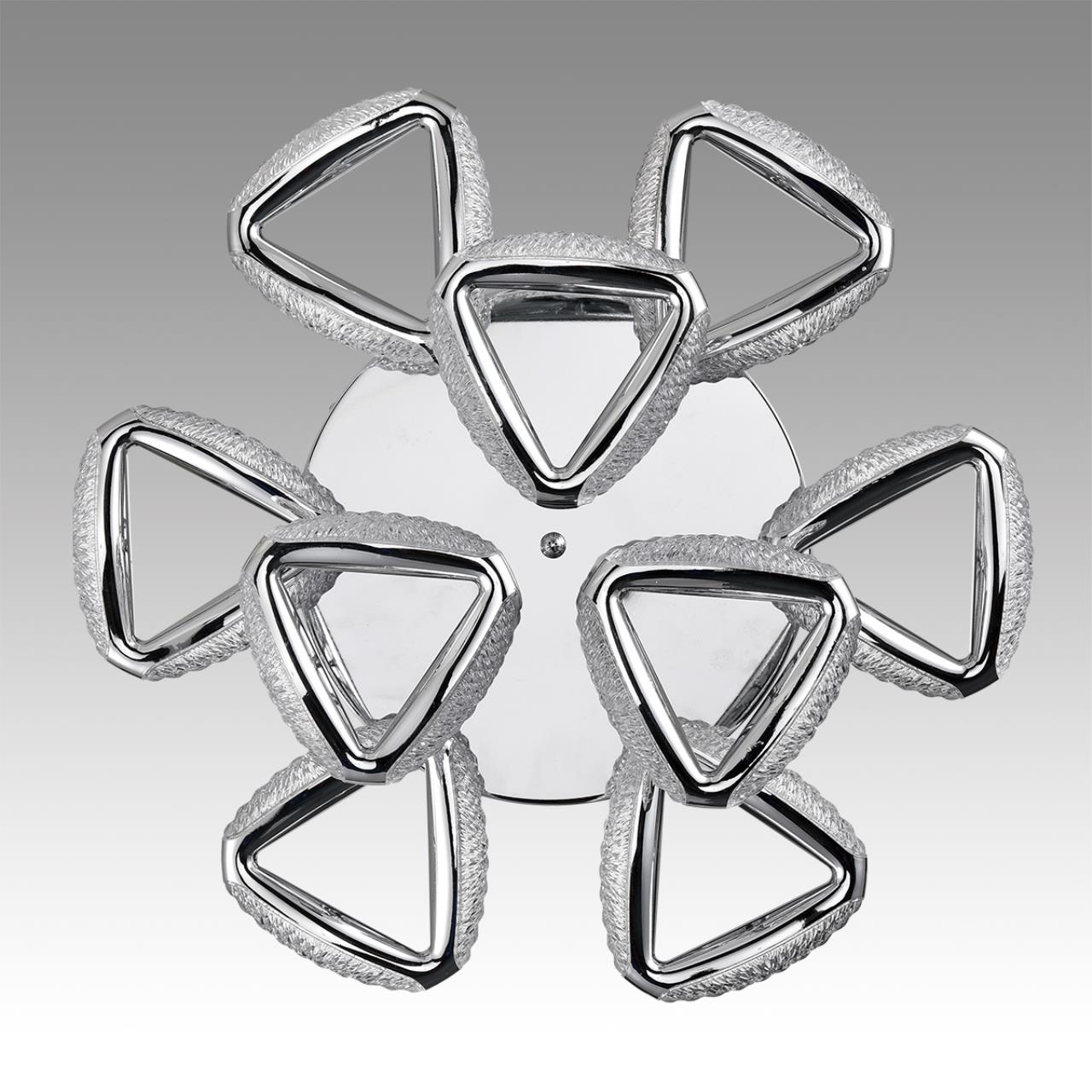 Лаконичная и в тоже время роскошная серия RUANA дополнит интерьер в стиле минимализм или хайтек. Данная серия люстр облегчена за счет пластиковых хромированных рожков. Треугольная форма плафонов очень элегантно собирается в круг. Рассеиватель декорирован во внутренней части акриловой крошкой, что во включенном состоянии добавляет еще больше блеска.