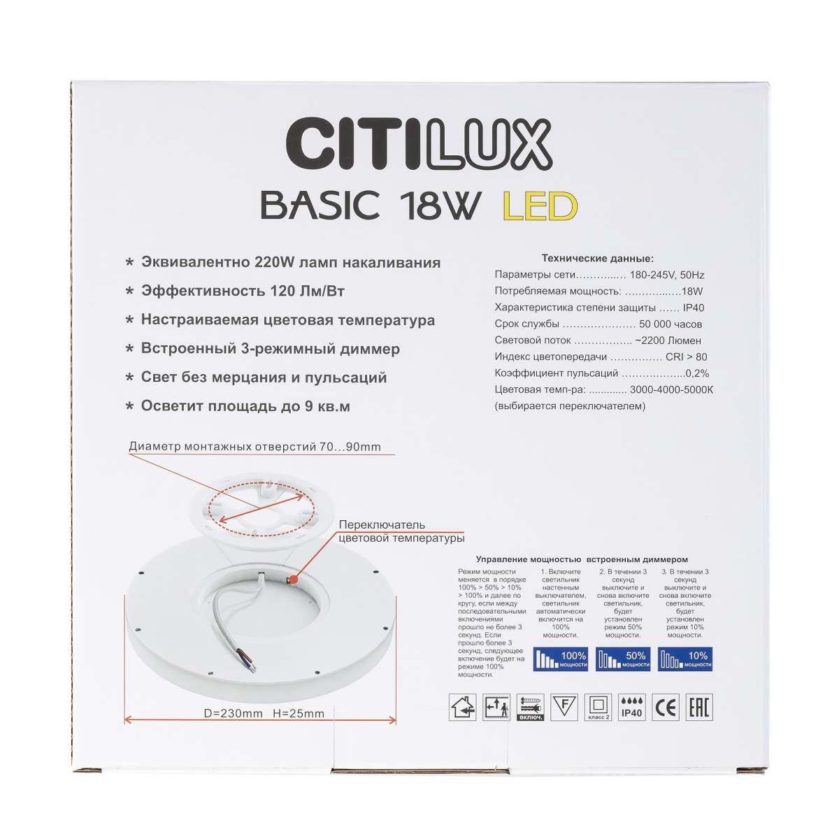 - Общая мощность: 18 W