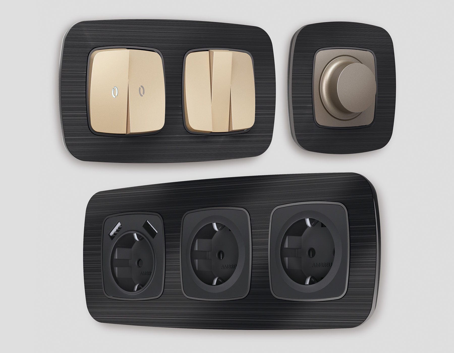 Многогранный ассортимент Ambrella Volt включает в себя механизмы, лицевые панели и рамки, а также комплекты, доступные в различных цветовых решениях. Продукция представлена в модульном исполнении, что позволяет гибко настраивать внешнийвид и функциональность. Вам будет легко заменить лицевую панель, рамку или механизм, найдя идеальное сочетание цветов.