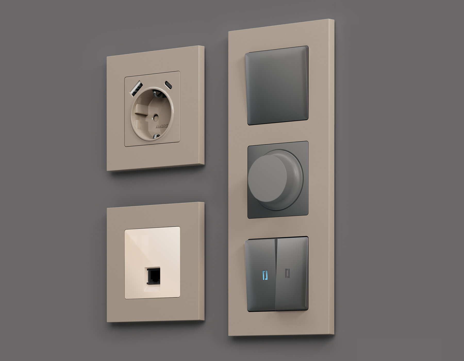 Многогранный ассортимент Ambrella Volt включает в себя механизмы, лицевые панели и рамки, а также комплекты, доступные в различных цветовых решениях. Продукция представлена в модульном исполнении, что позволяет гибко настраивать внешнийвид и функциональность. Вам будет легко заменить лицевую панель, рамку или механизм, найдя идеальное сочетание цветов.