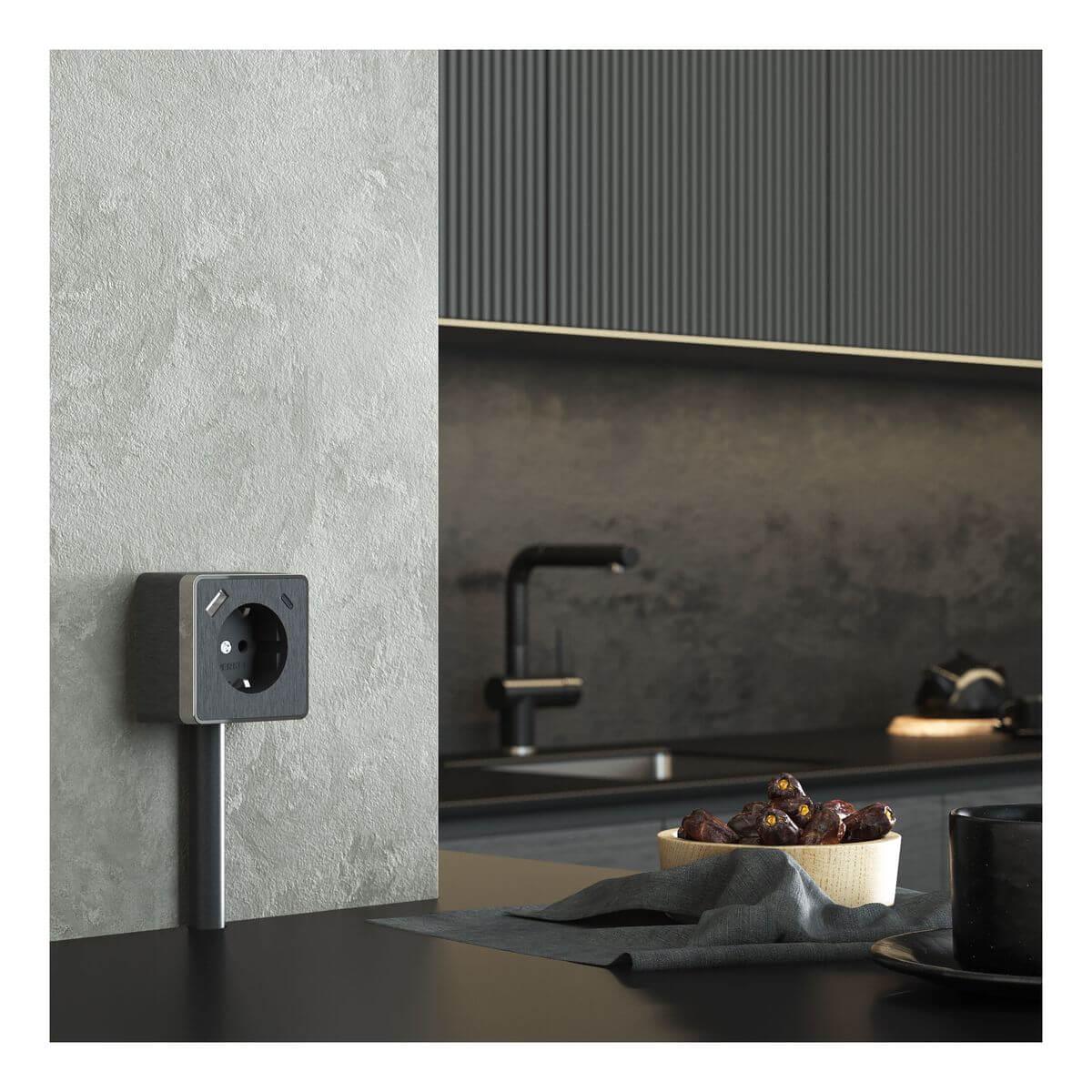 Купить "Розетка с заземлением, шторками и USB тип A+C Werkel графит рифленый W5071704 4690389179617"