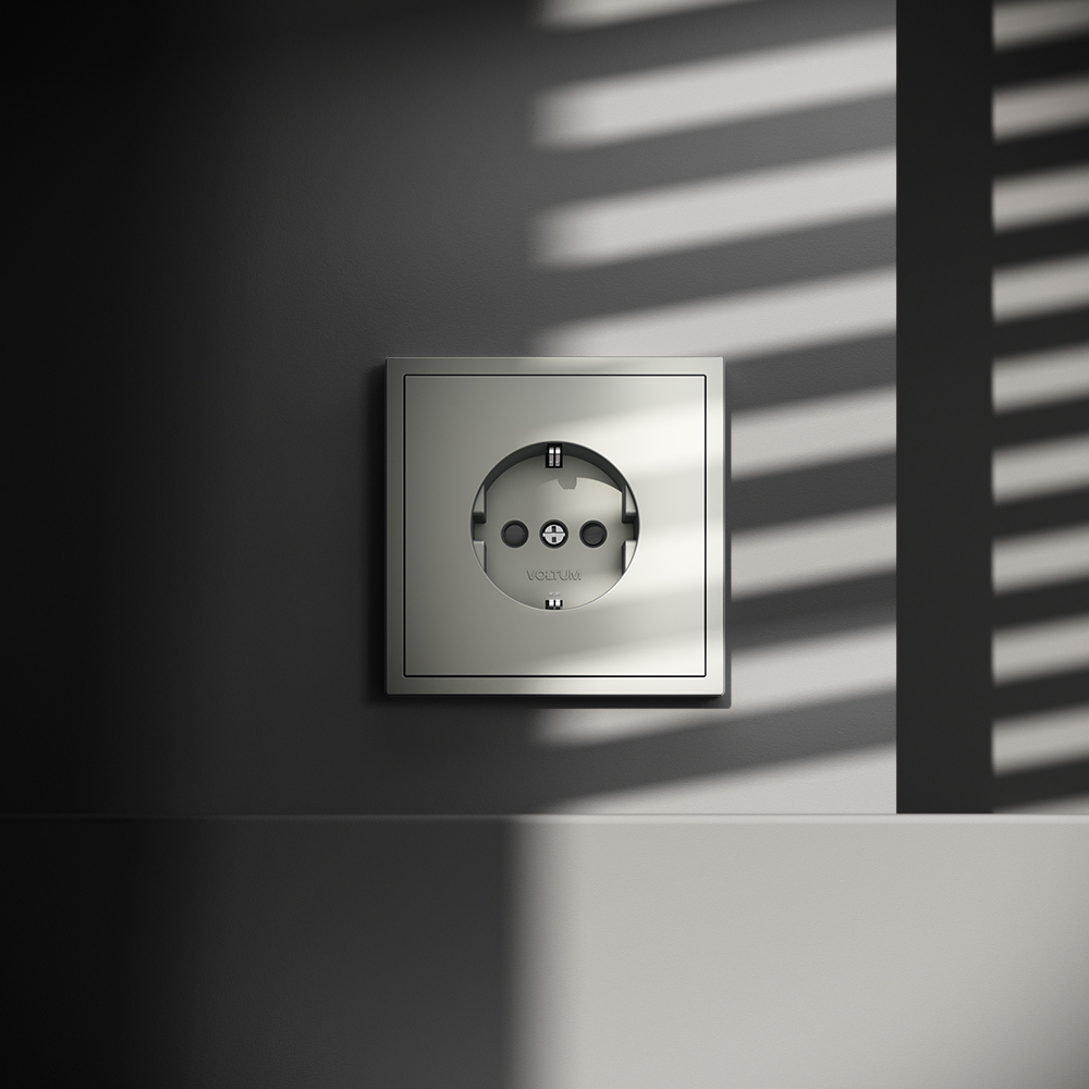 Купить "Розетка встраиваемая с заземлением и защитными шторками, 16А Voltum S70 VLS040205 (сталь)"