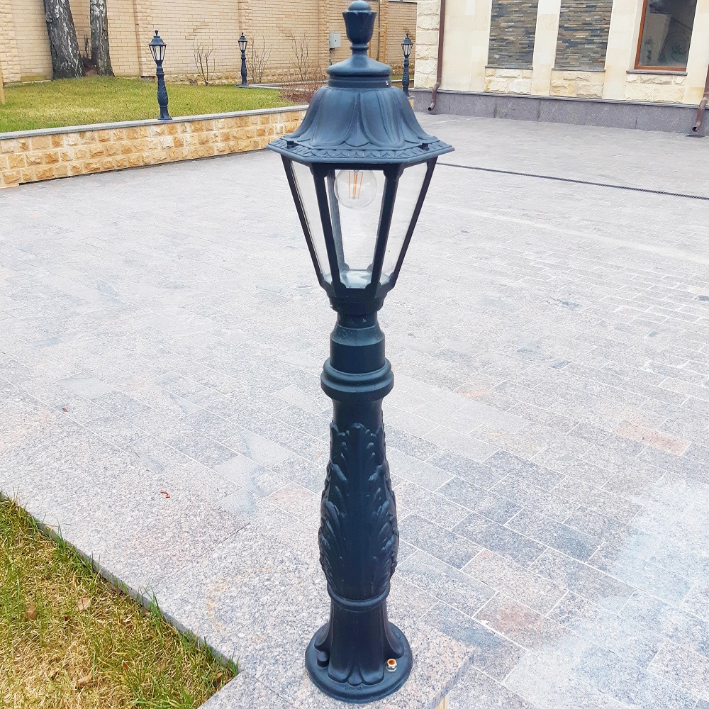 Садовый светильник-столбик FUMAGALLI серии RUT, модель RUT/IAFAET.R. Столбик освещения IAFAET.R и светильник RUT. Используются для архитектурного и ландшафтного освещения в стиле "классика". Место установки столбиков освещения - парковые дорожки, тротуары, газоны в парках и скверах, а так же ландшафтные и архитектурные объекты. Изготовлены в Италии, по уникальным технологиям "FUMAGALLI" из современного композитного полимера RESIN. Этот материал в 5 раз прочнее металла, не ржавеет, не окисляется, не выгорает на солнце, его не нужно красить. Все светильники пыле-влаго защищены по стандарту IP55 (Пылезащищенные, защита от водяных струй с любого направления). Рассеиватель выполнен из антивандального, не мутнеющего и не горючего PMMA (ПолиМетилМетаАкрилат). Срок службы светильника - не менее 20 лет. Температура использования от -60 до +90. В серии RUT есть фонари в настенном (BISSO/ RUT, OFIR/ RUT, MIRRA/ RUT, PORPORA/ RUT) подвесном (SICHEM/ RUT) и наземном исполнении (MINILOT/ RUT, MIZAR.R/ RUT, IAFAET.R/ RUT, ALOE.R/ RUT, ARTU/ RUT, GIGI/ RUT, RICU/ RUT, RICU/ISSO/ RUT 2L, NEBO/ RUT, NEBO OFIR/ RUT 2L, NEBO OFIR/ RUT 3L) со столбами разной высоты, с разным количеством и конфигурацией голов. Консоли настенных фонарей и кронштейны светильников на столбах освщения могут устанавливаться вверх/вниз. Столбы выше 150 см имеют в основе мощную стальную трубу с двойной оцинковкой. При заказе требуется выбрать цвет корпуса, цвет плафона и тип патрона. По стилю и дизайну серия уличных светильников RUT похожа на светильники малого размера серии ANNA и на светильники большого размера серии NOEMI. По размеру RUT относится к средним светильникам как серия CEFA, SALEM и GLOBE 300.