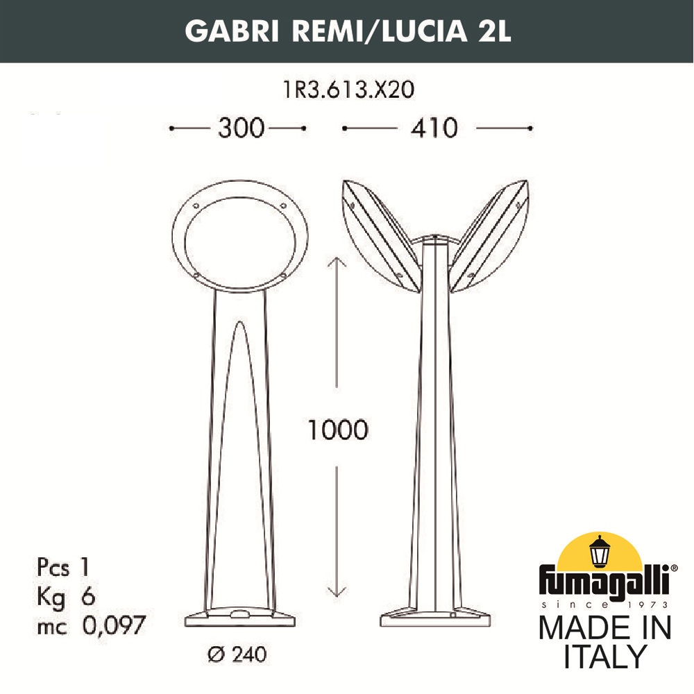 Купить "Садовый светильник-столбик наклонный Fumagalli Gabri remi/Lucia 2l 1R3.613.X20.LYE27"