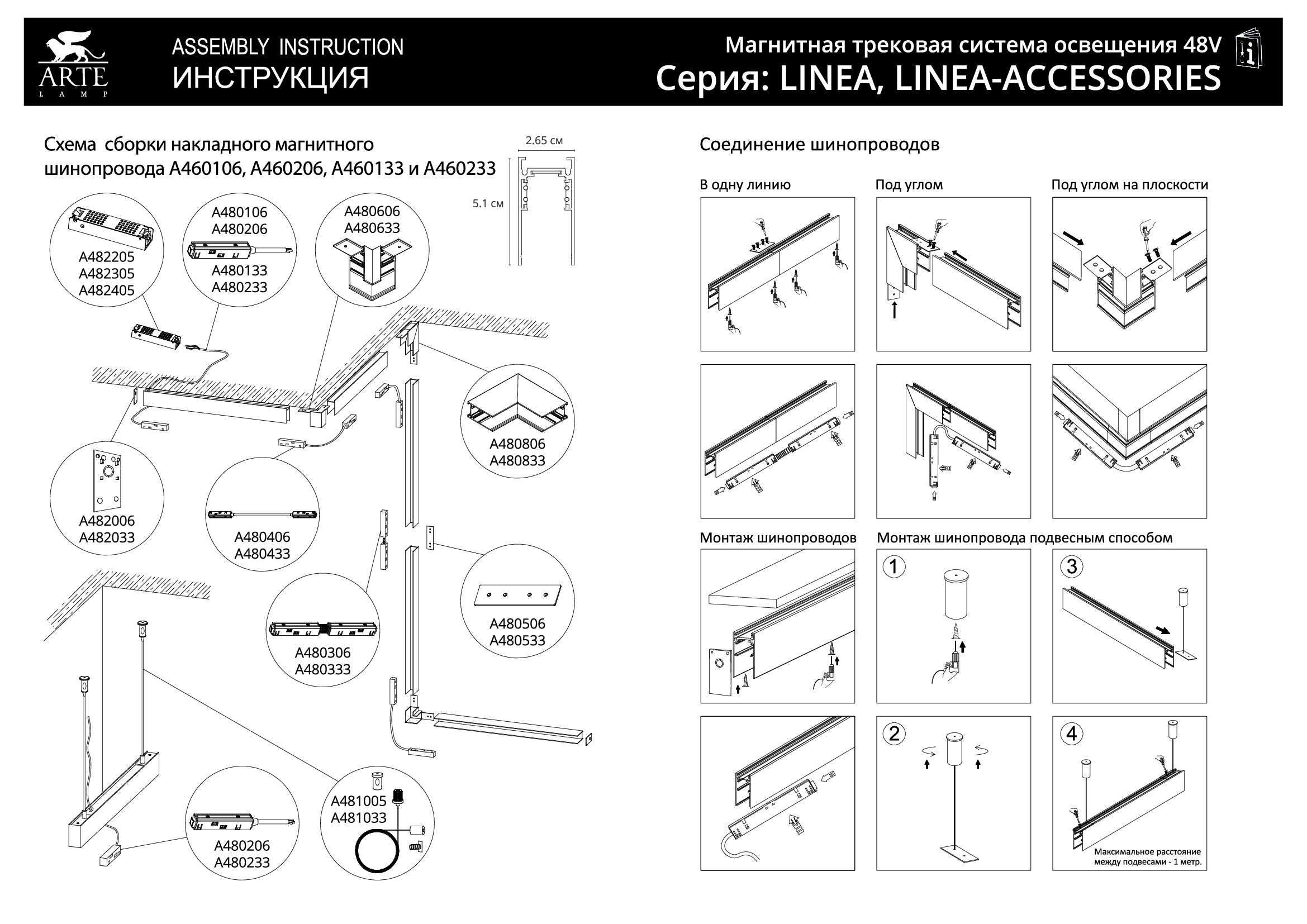 Купить "Шинопровод магнитный встраиваемый Arte Lamp Linea-Accessories A472206"