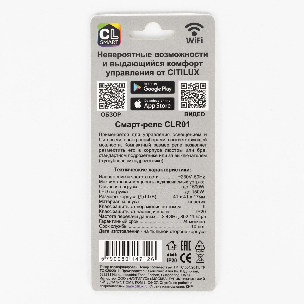Купить "Смарт-Реле умное одноканальноеCitilux Смарт CLR01"