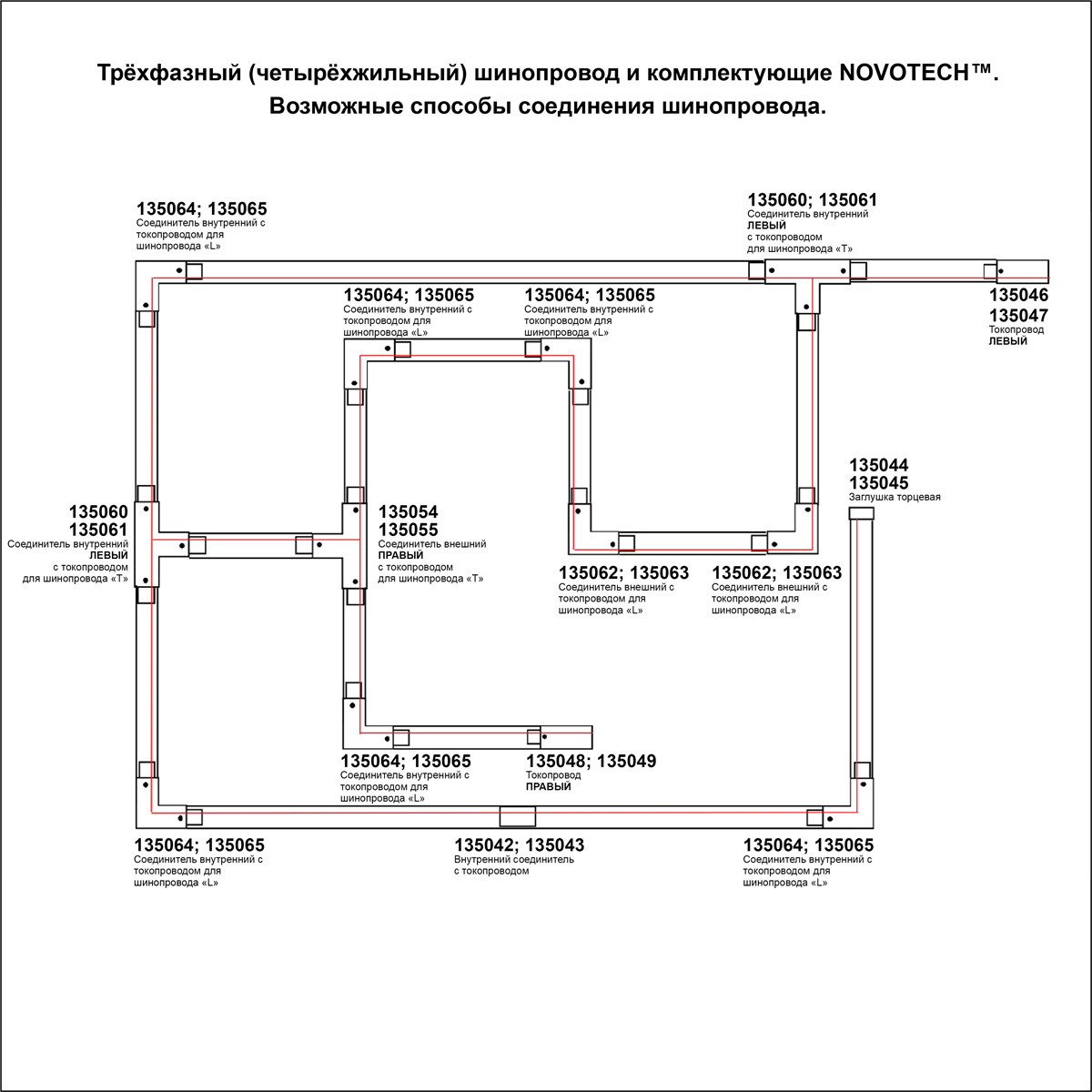 Купить "Соединитель T левый внутренний с токопроводом для трёхфазного шинопровода Novotech 135061"