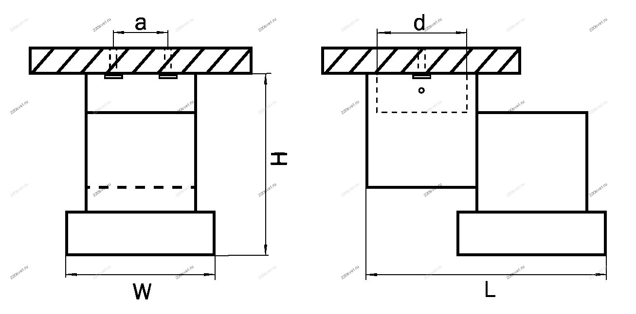 • Место установки: на потолок