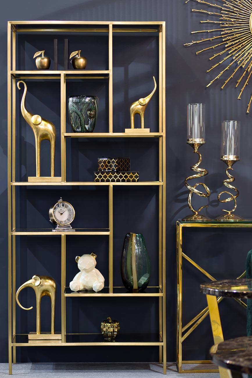 Самые модные тенденции европейского интерьерного дизайна воплотились в роскошном стеллаже из стали цвета матового золота с полками из закаленного черного стекла. Статуэтки, книги и вазы, размещенные на полках в произвольном порядке, сразу превращают стелл...