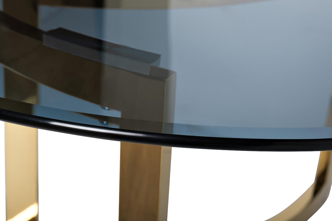 Ищете оригинальный и компактный дизайнерский журнальный стол? Представленный предмет мебели – это то, что вам нужно. Над его созданием работали дизайнеры, в результате чего получена продукция высокого качества и безупречного внешнего вида. Обрамленный темным стеклом журнальный стол смотрится дорого, презентабельно и стильно. Он станет настоящим украшением вашей гостиной или любой другой комнаты в доме. Представленный журнальный стол золотого цвета – это сочетание компактности, гармоничности и строгости линий, эксклюзивности дизайна. Модель оригинальная, не имеет аналогов на рынке. Вы не встретите этот предмет мебели у своих соседей, друзей или знакомых. Толщина столешницы - 10мм. На нашем сайте вы найдете журнальный столик арт. 47ED-ET062GOLD из этой же серии, чтобы создать прекрасный мебельный ансамбль в гостиной или спальне.