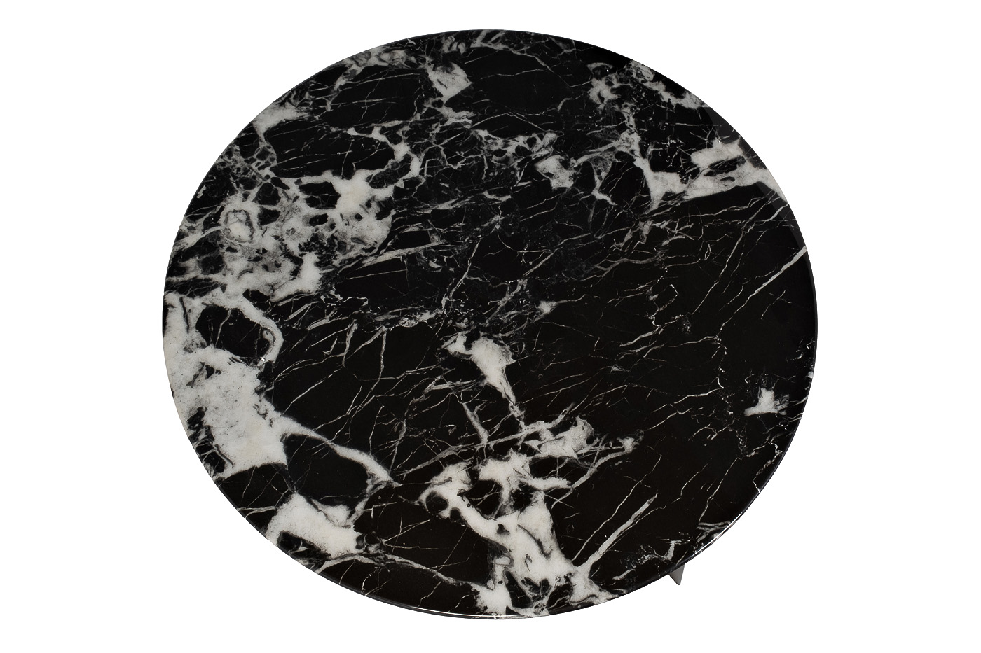 Роскошный журнальный стол с круглой столешницей из натурального мрамора с полимерным покрытием станет доминантой просторной гостиной или холла в стиле ар-деко. Столешница выполнена из натурального камня черного цвета с белыми прожилками. Уникальный природный рисунок мрамора, неповторимый в каждом изделии, делает этот журнальный стол похожим на произведение искусства. Опоры стола, выполненные из нержавеющей стали цвета бежевый металлик, выглядят легко и изящно. Эта модель стола исполнена из искусственного черно-белого мрамора (камень с полимерным покрытием). Основание из гнутых листов нерж.стали цвета бежевый металлик.