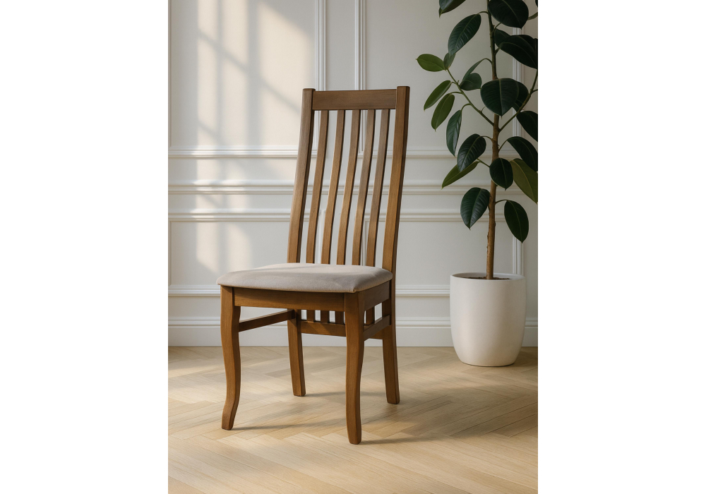 Материал каркаса - массив дерева; Материал сиденья - ткань; Материал обивки - ткань; Ширина - 45; Глубина - 55; Высота - 102; Ширина сиденья - 42; Глубина сиденья - 44; Высота сиденья - 46;