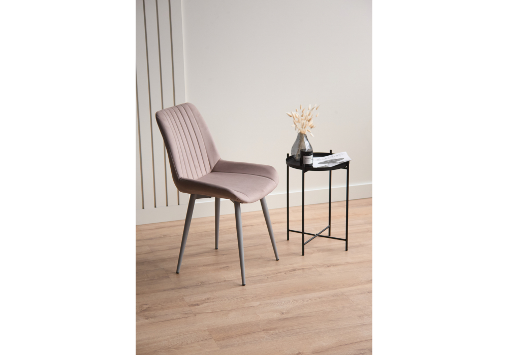 Материал каркаса - металл; Материал сиденья - велюр; Материал обивки - велюр; Цвет ножек - серый; Ширина - 50; Глубина - 56; Высота - 82; Ширина сиденья - 47; Глубина сиденья - 42; Высота сиденья - 48;