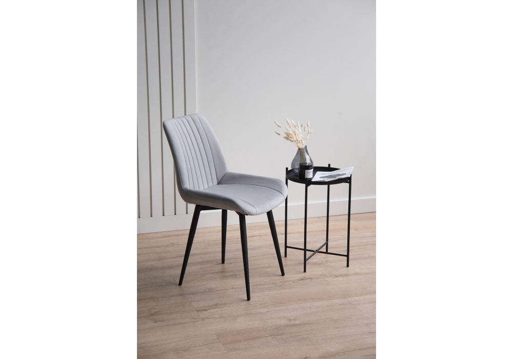Материал каркаса - металл; Материал сиденья - велюр; Материал обивки - велюр; Цвет ножек - черный; Ширина - 50; Глубина - 56; Высота - 82; Ширина сиденья - 47; Глубина сиденья - 42; Высота сиденья - 48;