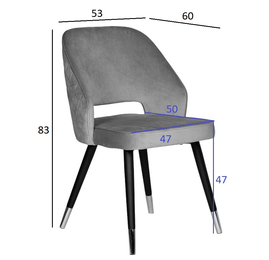 Материалы: обивка - велюр, каркас - дерево, ножки - металл