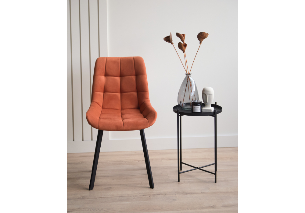 Материал каркаса - металл; Материал сиденья - велюр; Материал обивки - велюр; Цвет ножек - черный; Ширина - 50; Глубина - 60; Высота - 80; Ширина сиденья - 44; Глубина сиденья - 41; Высота сиденья - 48;