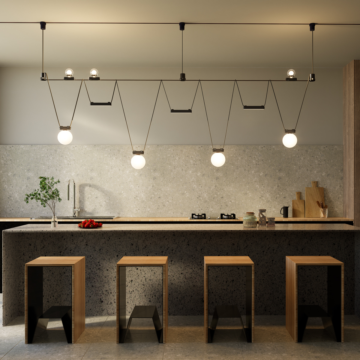 Светодиодные светильники для низковольтного шинопровода поддерживают два режима работы: «M1» и «M2». В режиме «M1» они управляются через настенный выключатель с возможностью выбора цветовой температуры. Для этого используются кнопки: «Y» — тёплый белый свет, «N» — нейтральный белый, «W» — холодный белый. В режиме «M2» доступно умное управление через приложение Smart Life или пульт дистанционного управления. В этом режиме можно диммировать свет, менять цветовую температуру и создавать сценарии освещения. Для работы светильников в этом режиме требуется контроллер (арт. 359456) и драйвер (арт. 359454–359455) либо встроенный смарт-драйвер (арт. 359453). Управление возможно как через пульт, так и через приложение Smart Life. Светильник работает на протоколе TUYA 2,4 ГГц, который не подключается напрямую к домашнему Wi-Fi. Для интеграции светильника в сеть и управления через приложение или голосового ассистента необходим умный шлюз (арт. 359457), который соединяет устройства с вашей Wi-Fi-сетью.