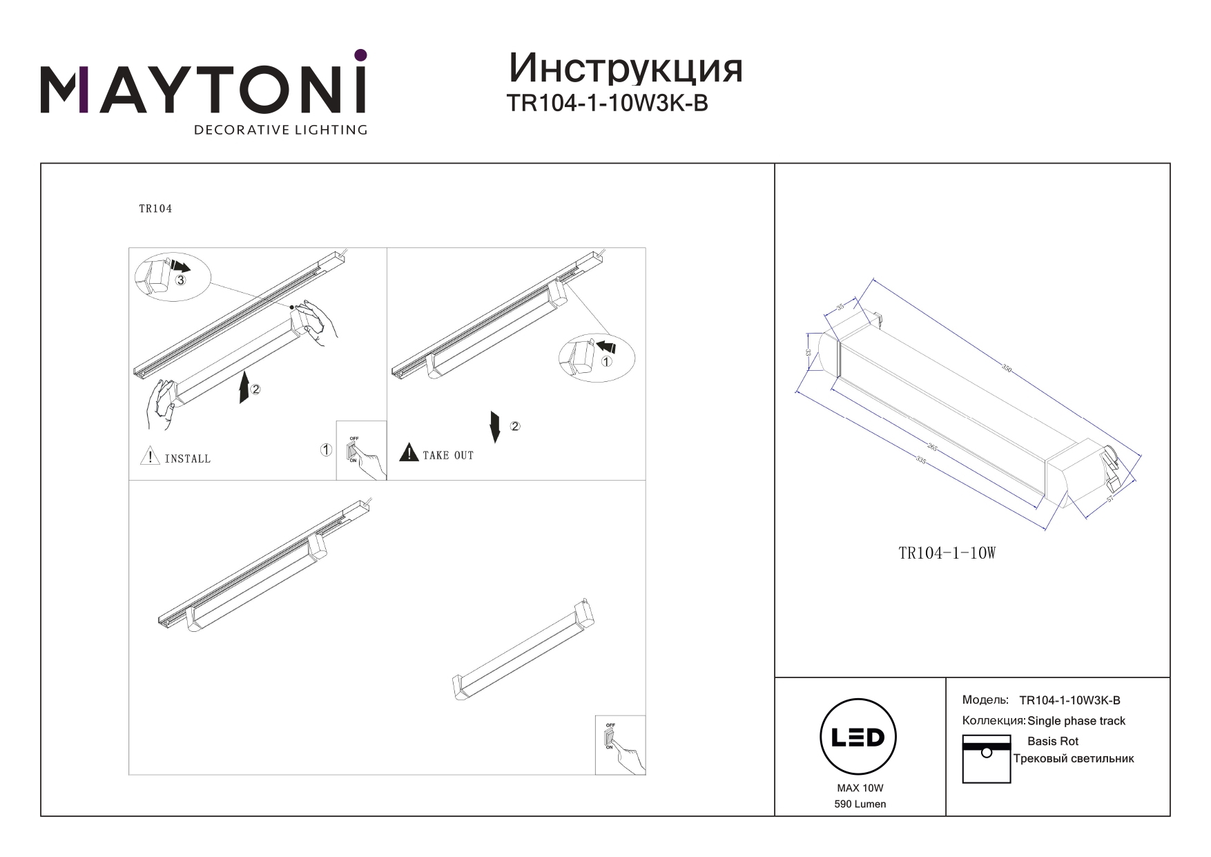 Однофазный трековый светильник Maytoni Basis Rot TR104-1-10W3K-B в Орле