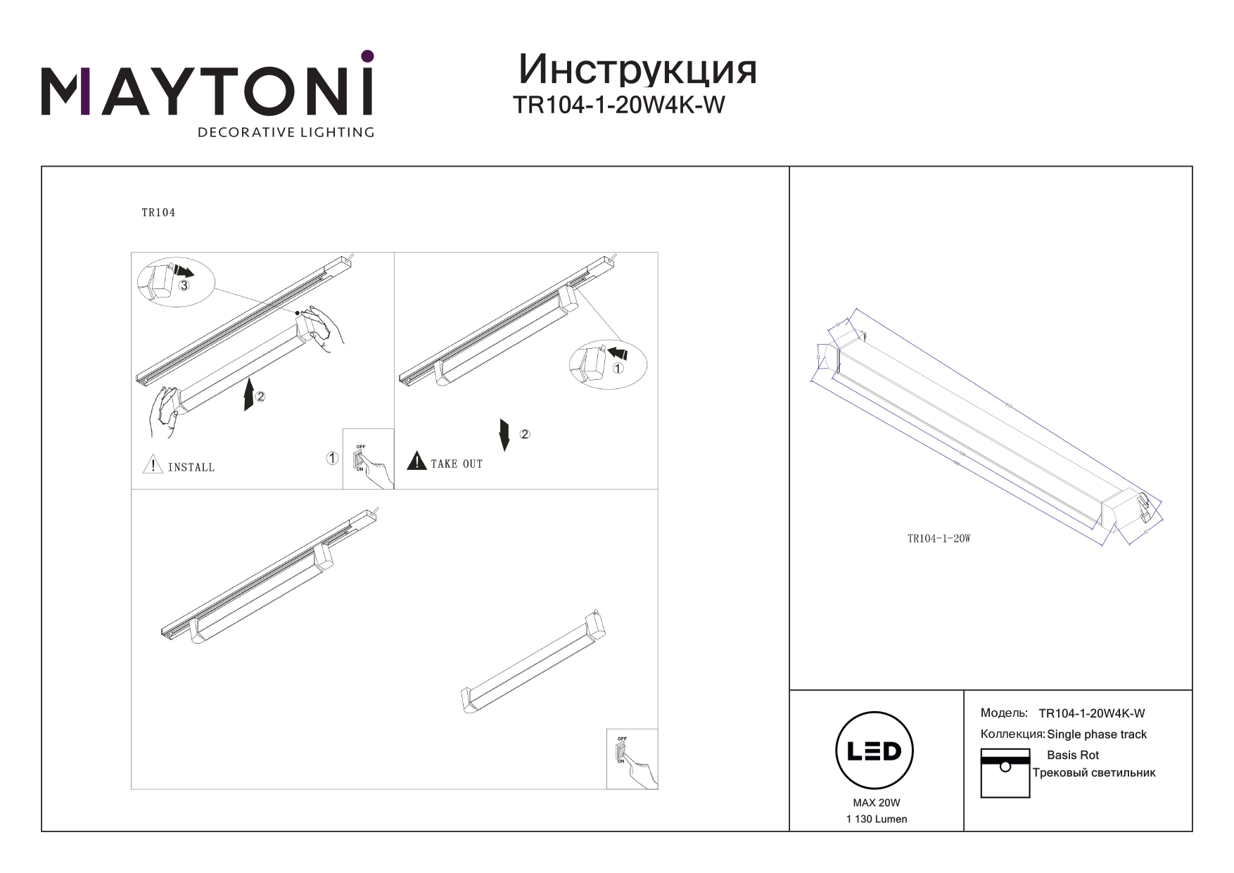 Все характеристики TR104-1-20W4K-W