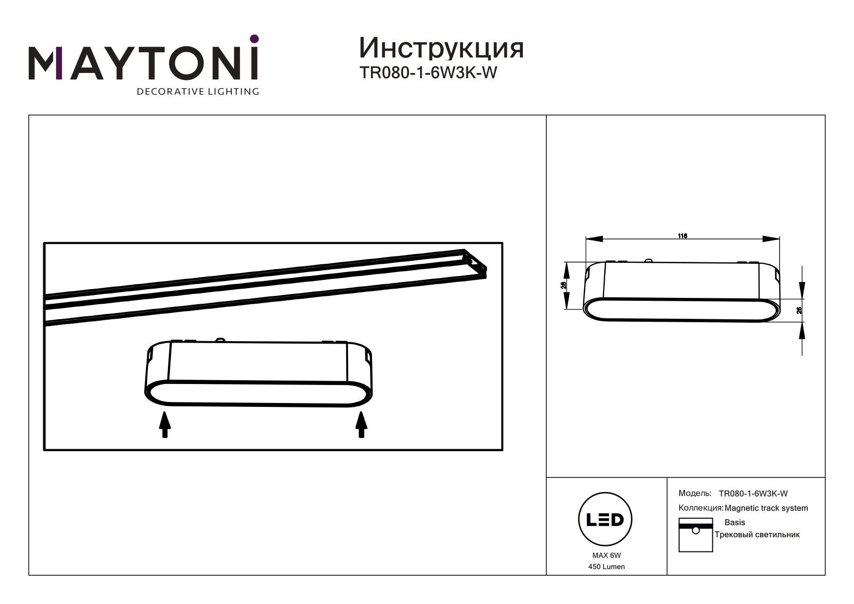 Трековый магнитный светильник Maytoni Basis TR080-1-6W3K-W в Орле