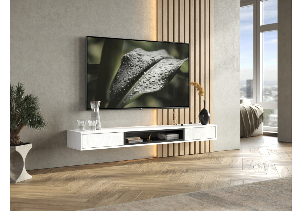 Купить "ТВ-тумба Woodville Делора 1,6м белый / черный 674714"