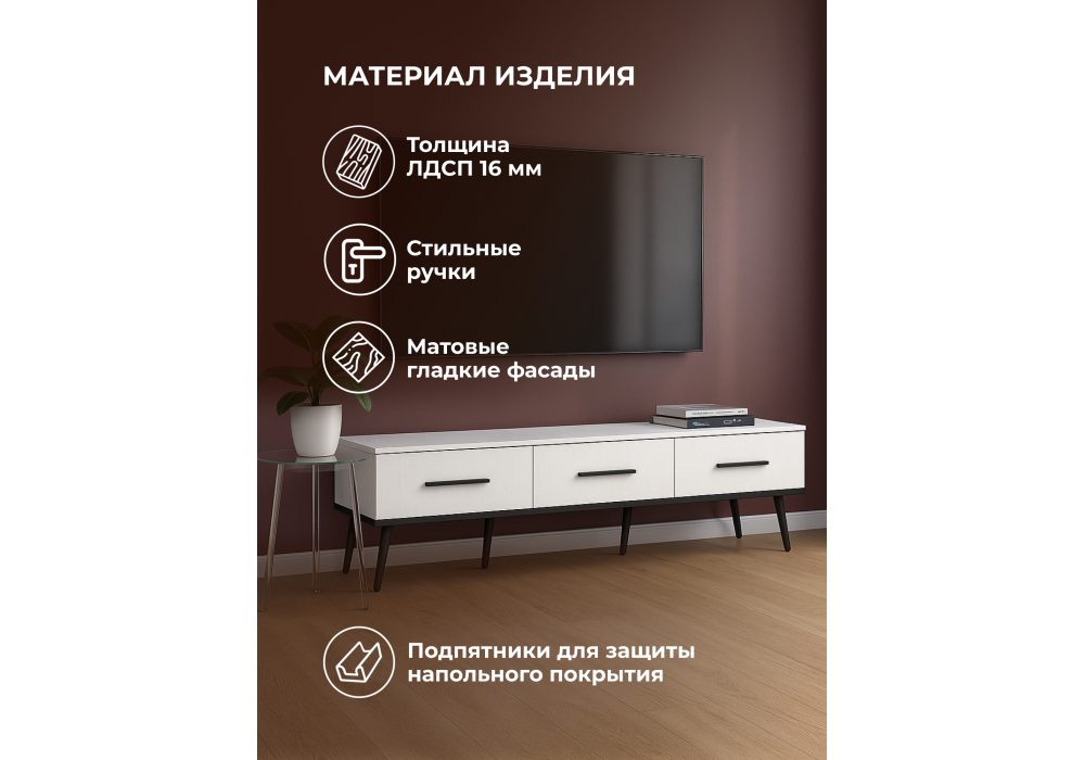 Материал каркаса - ЛДСП; Ширина - 165,2; Глубина - 45; Высота - 44;
