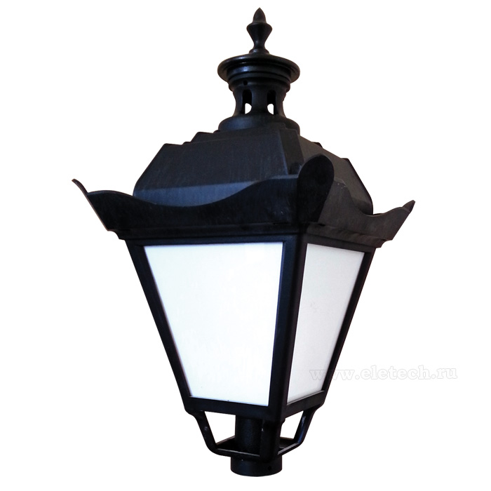 ветильник НТУ - уличный торшерный светильник для установки на опору. Предназначен для освещения общественных территорий, пешеходных дорожек и тротуаров, парков и скверов. Светильник прост в монтаже и обслуживании, устанавливается с помощью винтов на вертикальную трубчатую опору д. 60мм. Корпус светильника изготовлен из атмосферостойкого пластика, что практично при условии уличного использования. Пластиковый корпус позволяет не думать о такой проблеме как коррозия, но в тоже время специальные свойства полимера обеспечивают его атмосферостойкость и устойчивость к ультрафиолету. Рассеиватель изготовлен из ударопрочного светостабилизированного опалового ПММА. Светильник герметичен и обеспечивает степень защиты от пыли и влаги IP 55. Данную модель 1030480136 можно купить в интернет магазине 220svet.ru