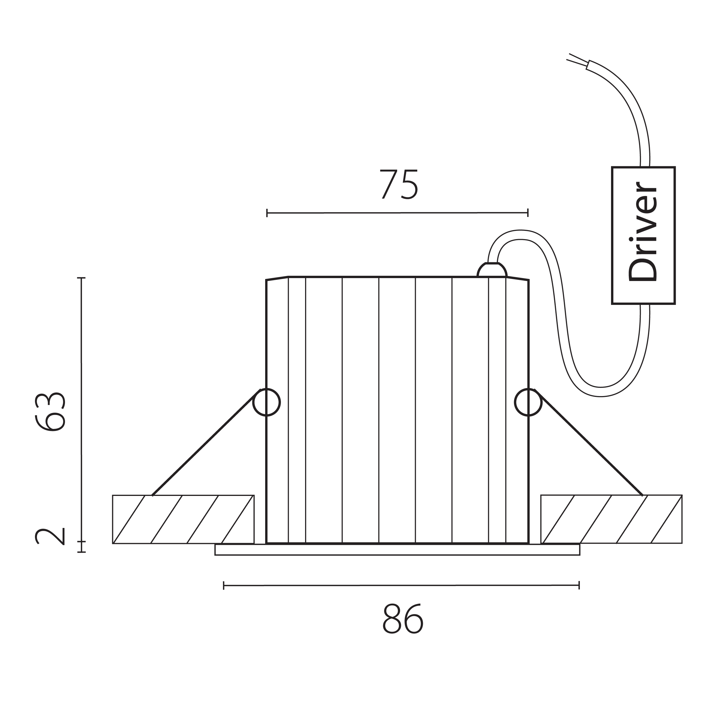 - Диаметр врезного отверстия: 75 мм (7.5 см)