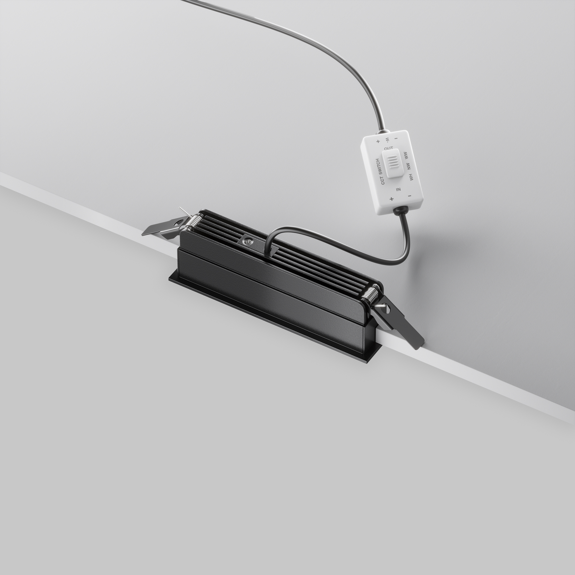 Материал корпуса - металл; цвет - черный. Равномерная заливка цветом стен. LED-источник света. Белый матовый рассеиватель. Переключатель цветовой температуры(2.7-3-4К). Высокий коэффициент цветопередачи >90. Совместимость с источниками питания Dali и Triac.