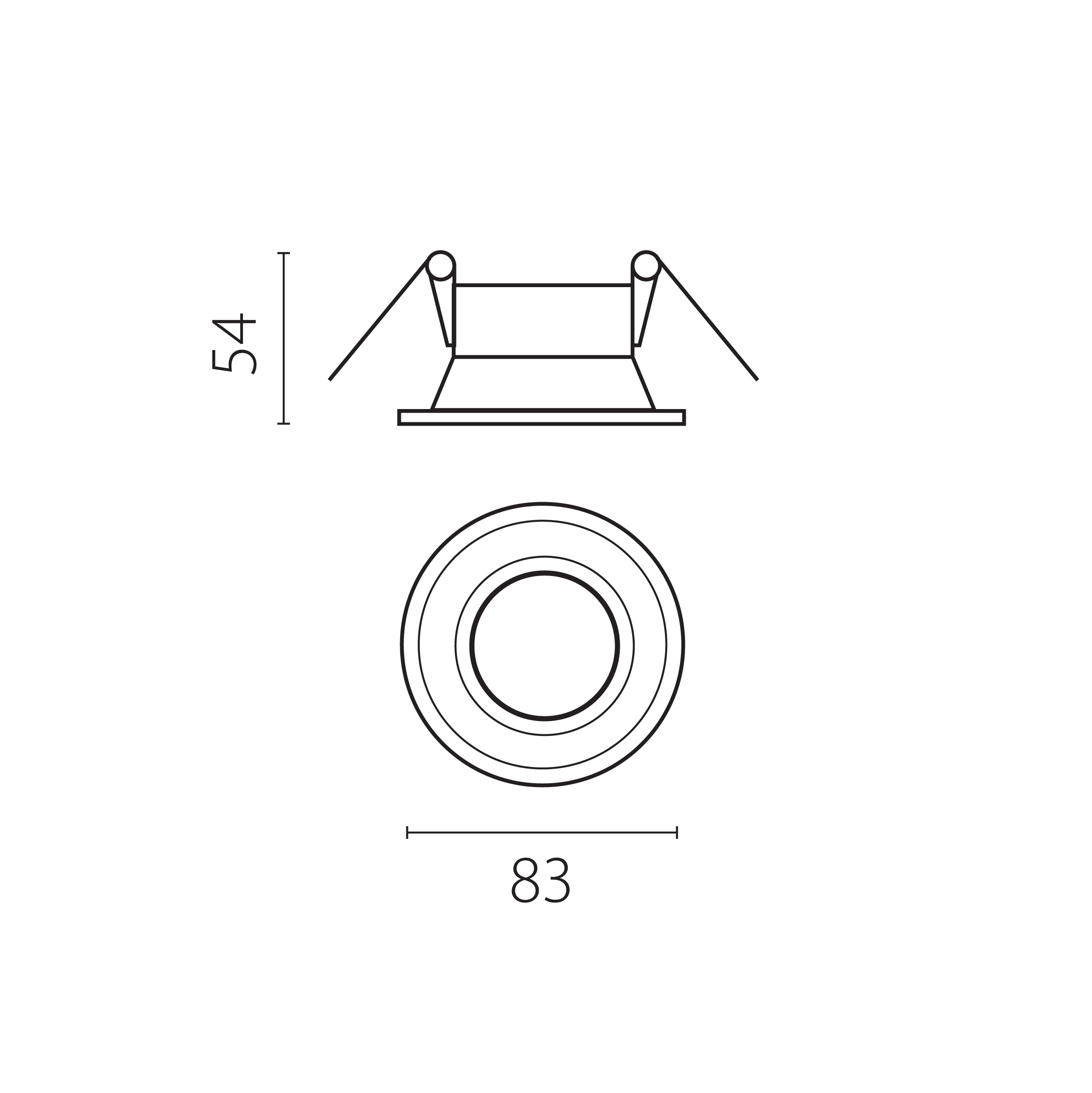 - Диаметр врезного отверстия: 83 мм (8.3 см)