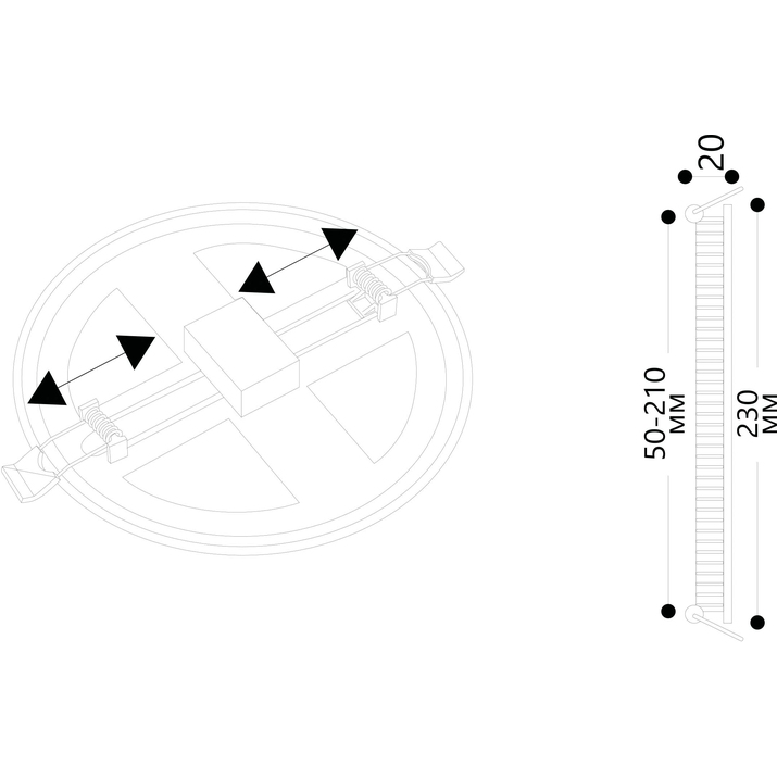 - Диаметр врезного отверстия: 50-210 мм